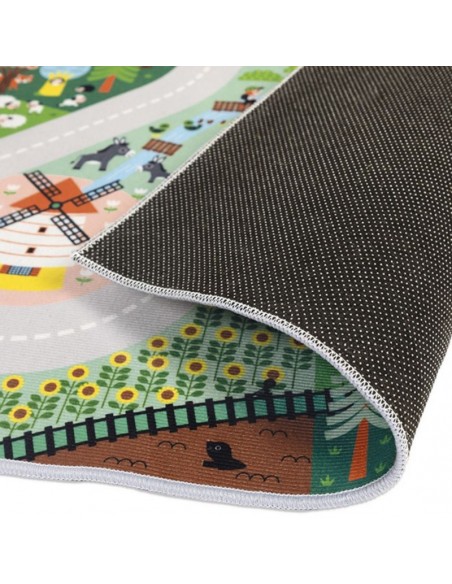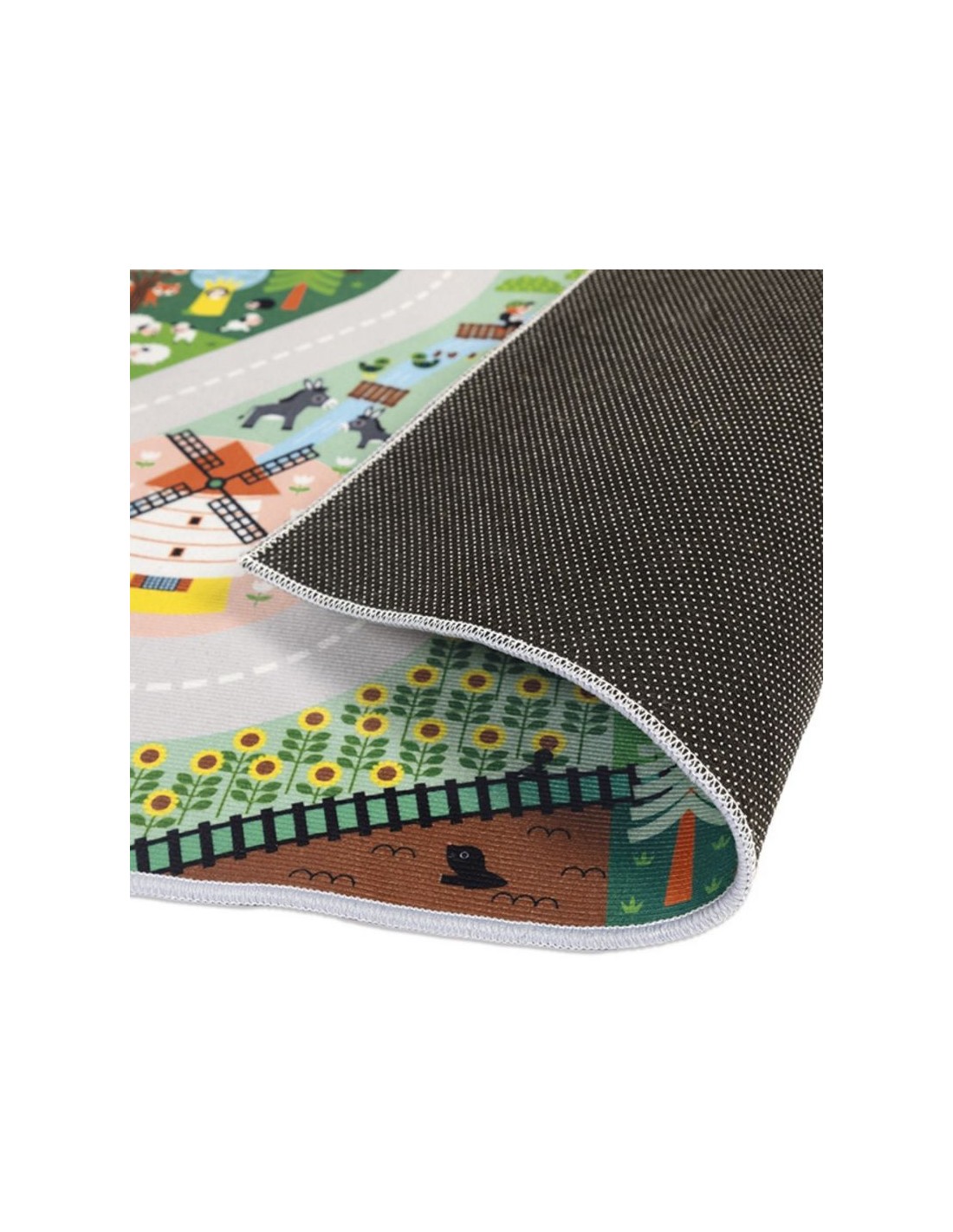 Les enfants adorent faire rouler leurs petites voitures sur les routes sinueuses, s’arrêter près des cultures ou imaginer des scènes . Chaque partie du tapis raconte une histoire… à eux de l’inventer !