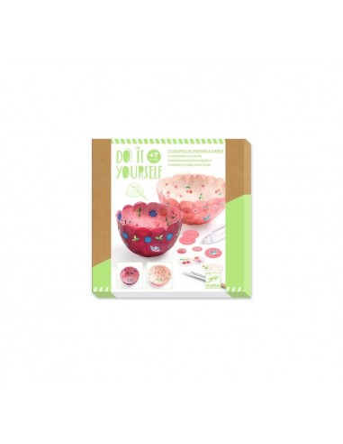 Un kit créatif complet de chez Djeco pour fabriquer 2 coupelles décoratives en papier en utilisant uniquement du papier et de la colle. Il suffit de coller les grands confettis sur les moules à l'aide de la colle liquide, d'abord à l'intérieur, puis à l'extérieur de la coupelle, de les laisser sécher, puis de les démouler. Ils sont alors prêts à être utilisés !
