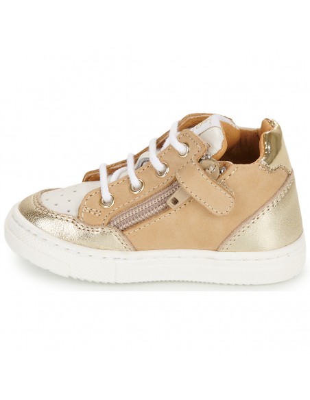 Addict en herbe de la vague old school, converti de la première heure aux modèles devenus légendaires ou simple fan de mode sportswear... Tous les goûts sont dans les sneakers ! GBB présente ici une basket montante qui parlera à tous les petits loups. Sa tige en cuir et synthétique et son coloris beige lui confèrent une allure sportive très actuelle. Sa doublure en cuir porcin et sa semelle en caoutchouc sont également de bons atouts. Des paillettes à foison et la technologie Flex, parfaite pour coller aux besoins spécifiques des plus petits, n'entachent pas l'image de cette paire désirable ! La sneaker urbaine par excellence, enfin déclinée en version enfants !