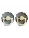 En caoutchouc naturel, le Lot de 2 Tétines Daisy Night Caoutchouc de Frigg a été conçu pour le bien-être de bébé. Les tétines qui le composent ont été fabriquées à partir de matière naturelle et seront encore plus douces que celles en silicone.