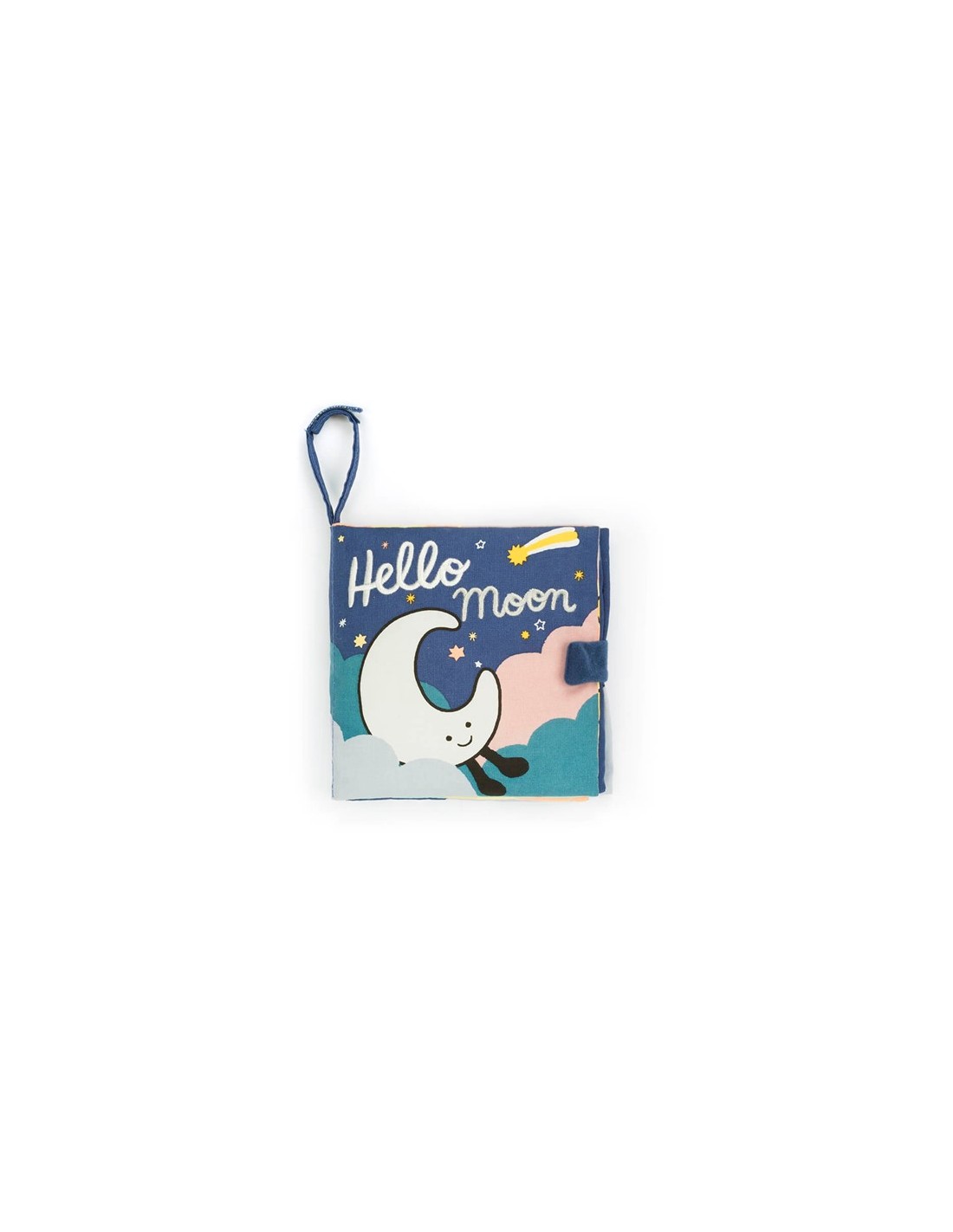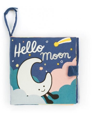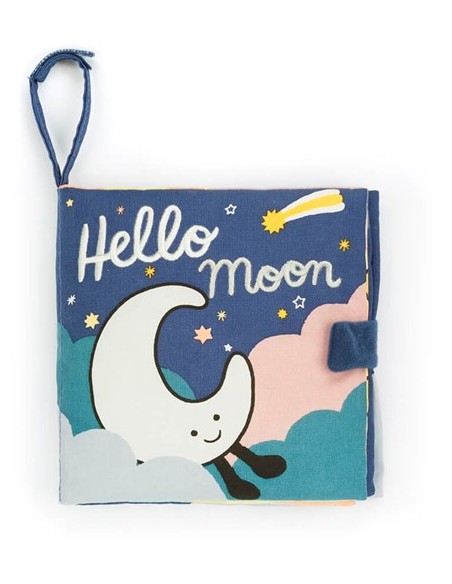 "Hello Moon" est un livre sensoriel doux en tissu durable, orné de belles illustrations en anglais qui stimulent le développement de l'enfant en l'initiant au monde fascinant des images, des couleurs et des mots. Il se fixe facilement à la poussette, au porte-bébé ou au lit à l'aide d'une bande velcro et est rempli de textures intrigantes pour les petites mains de bébé. Ce livre souple contribue à stimuler les sens, à développer les capacités cognitives et motrices et à favoriser le développement global de l'enfant. Fabriqué avec le souci du détail, il ne présente aucun danger pour l'enfant.