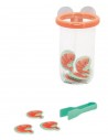 Grâce à la pince, votre enfant peut attraper chaque crevette qui flotte à la surface de l’eau et les déposer dans un joli panier qui se fixe sur la faïence grâce à ses ventouses.