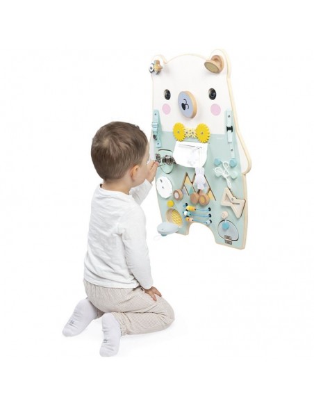- Un compagnon de jeu affectif : avec sa forme d’ours blanc et ses amis (abeille, lapin…), ce panneau d’activités devient vite le complice du quotidien.