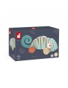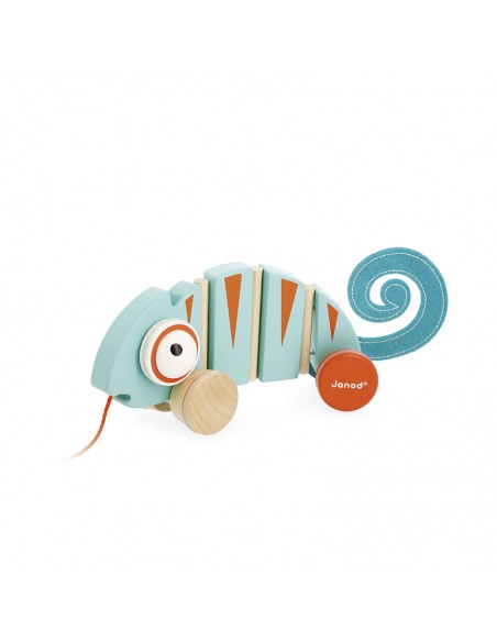 Prêts pour une balade sous les tropiques ? Bébé va pouvoir partir à l'aventure en promenant cet adorable caméléon à tirer en bois. Avec ses yeux qui roulent sur eux-mêmes et son corps articulé, ce jouet à promener ondule quand il roule ! De quoi amuser les enfants dès 12 mois pendant des heures. Avec son air rigolo et sa queue en feutrine toute douce, ce jouet d'éveil en bois va faire craquer toute la famille ! Idéal pour encourager les enfants à partir d'un an à se déplacer, ce joli caméléon sera le compagnon de leurs premiers pas. Ce jouet à tirer en bois est peint à l'eau, il est en bois issu de forêts gérées durablement (certifiées FSC®)