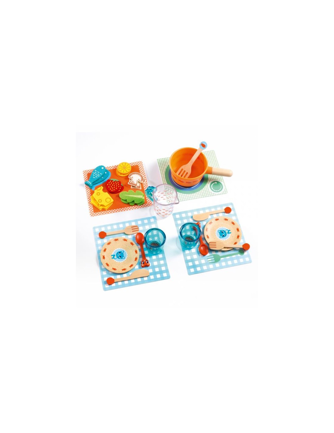Ce jeu promet un riche apprentissage des formes, des couleurs et de l’adresse pour organiser un repas pour 2 personnes. Cette dinette va aussi permettre d'éveiller votre enfant aux différentes séquences d'un repas.