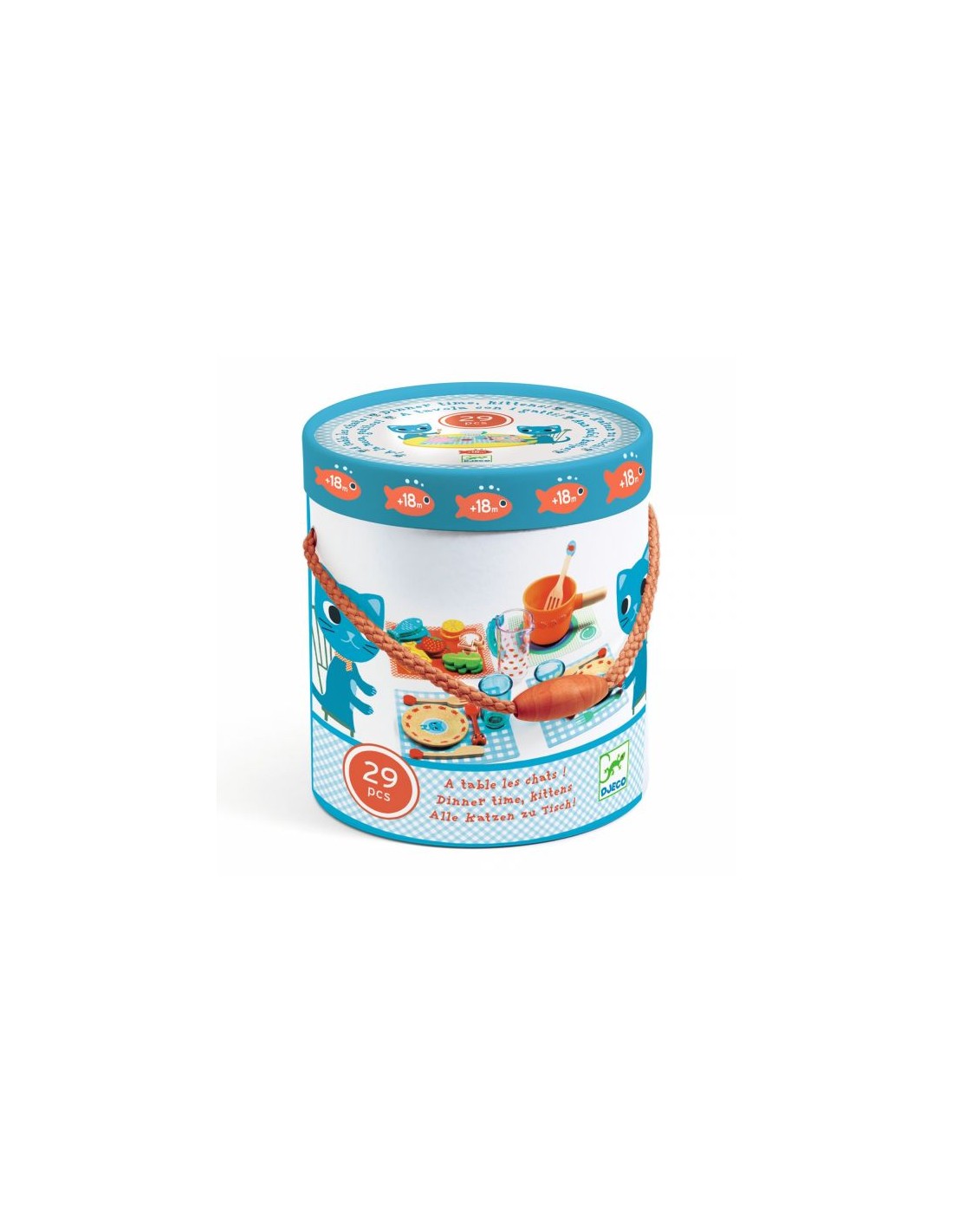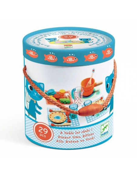Découvrez ce jeu d'imitation À table les chats ! de la gamme Gourmandises de la marque Djeco. Ce jeu permettra à votre petit bout de développer son imagination et son vocabulaire sur le thème de la cuisine.