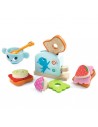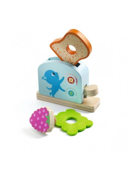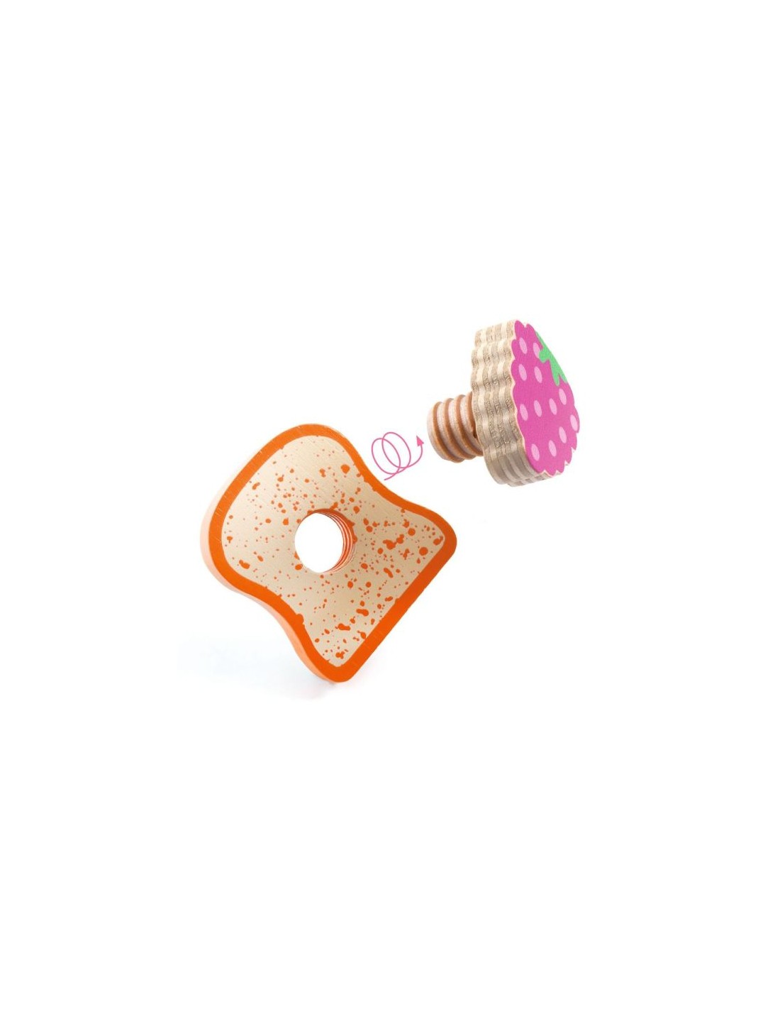 Cette dinette est composé de 3 toasts en bois, 3 tranches en bois à visser, 3 pièces de feutrines confiture, 1 toaster, 1 tasse et 1 petite cuillère. Les pièces sont à visser sur les tartines pour que votre enfant crée ses propres combinaisons.