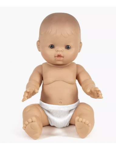 Lino petit garçon d’Europe, poupon Gordis sans cheveux exclusive Minikane, vendu sans culotte.