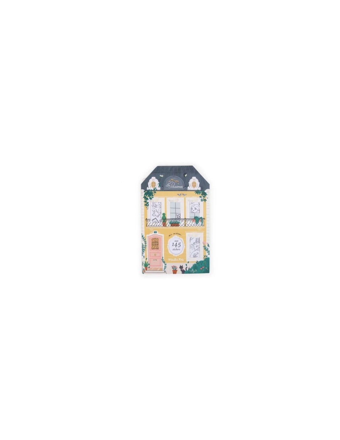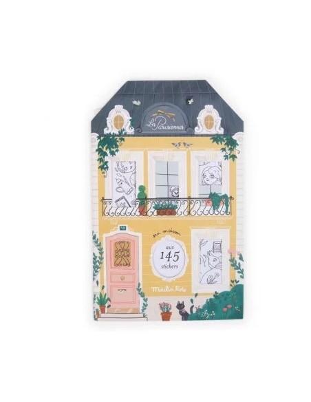 Découvrez le cahier de coloriage et de stickers de la collection Les Parisiennes de Moulin Roty, un magnifique cahier de coloriage de 20 pages avec 145 stickers.